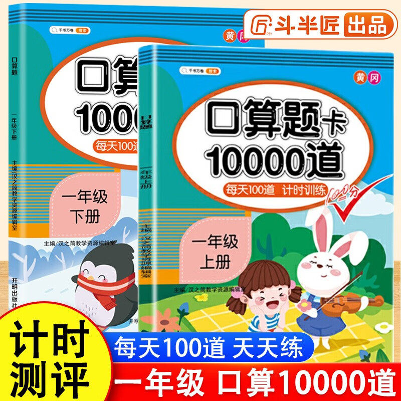 斗半匠口算题一年级上册下册口算大通关口算天天练口算题卡通用版10000道口算题每天100道计时测评口算本