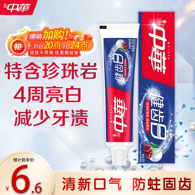 中华健齿白小苏打牙膏亮白去渍美白去黄清新口气多效清洁果香味200g