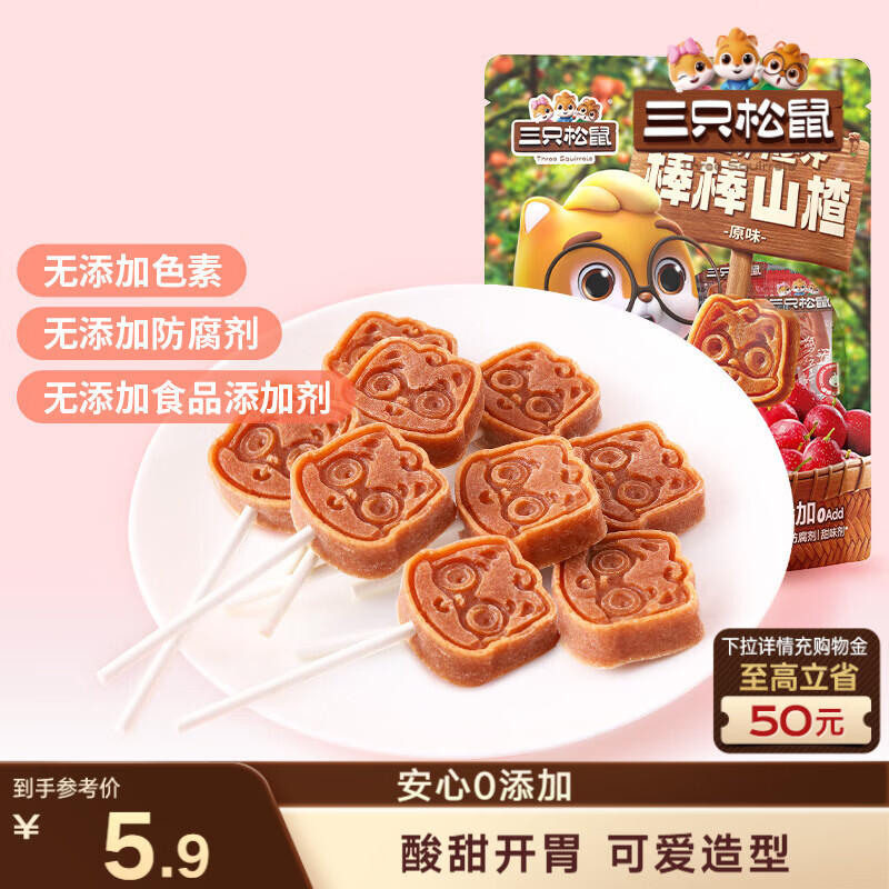 三只松鼠棒棒山楂108g约10支蜜饯果干果糕棒棒糖儿童休闲零食独立包装