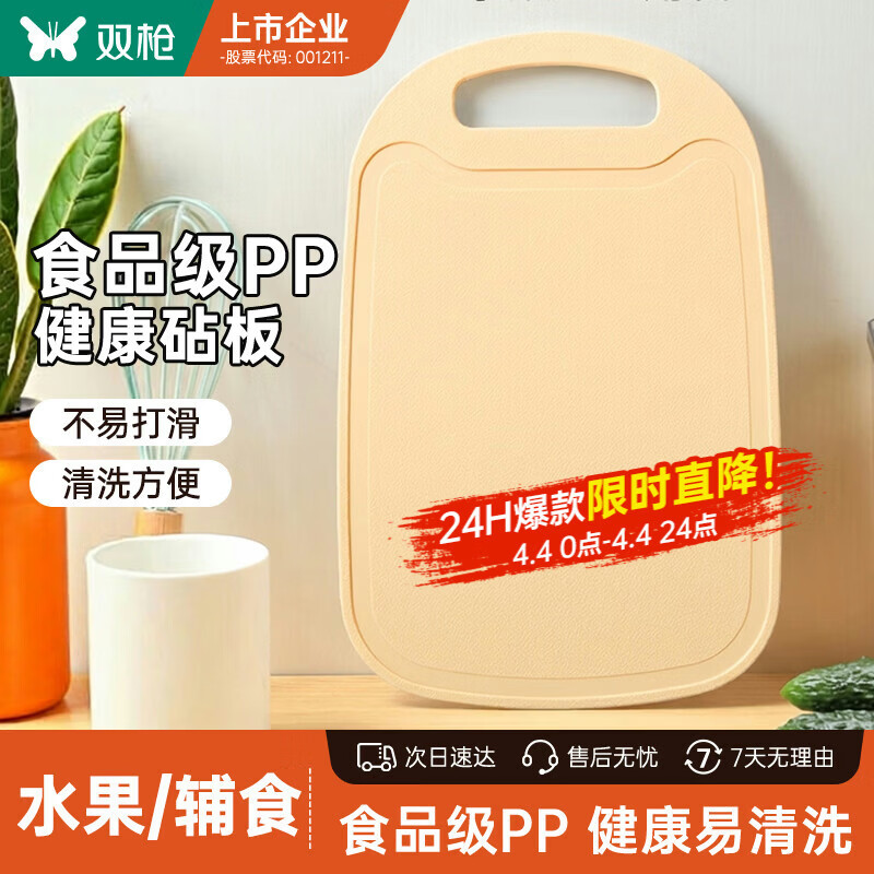 双枪砧板儿童辅食板塑料切菜板防霉水果板刀板32.7*21.8*0.4cm