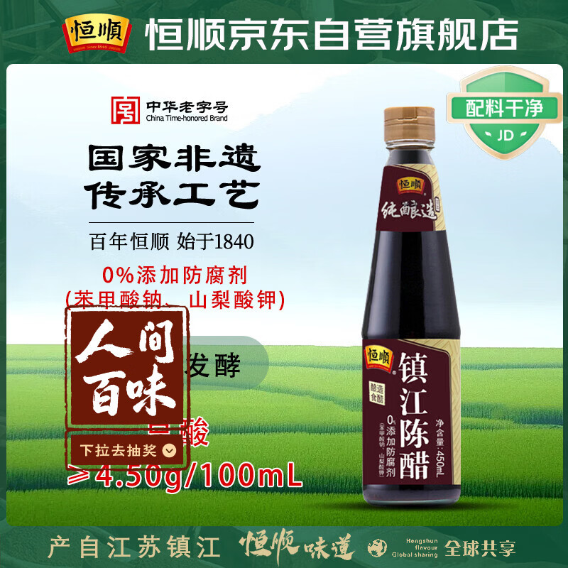 恒顺 镇江陈醋 4.5度 450ml 酿造食醋 不添加防腐剂