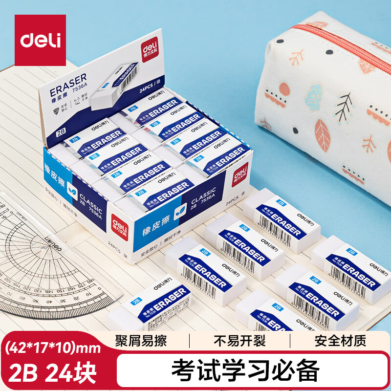 得力(deli)24块净白2B橡皮擦 易擦少屑 开学文具考研中考高考学生考试美术绘图橡皮铅笔用