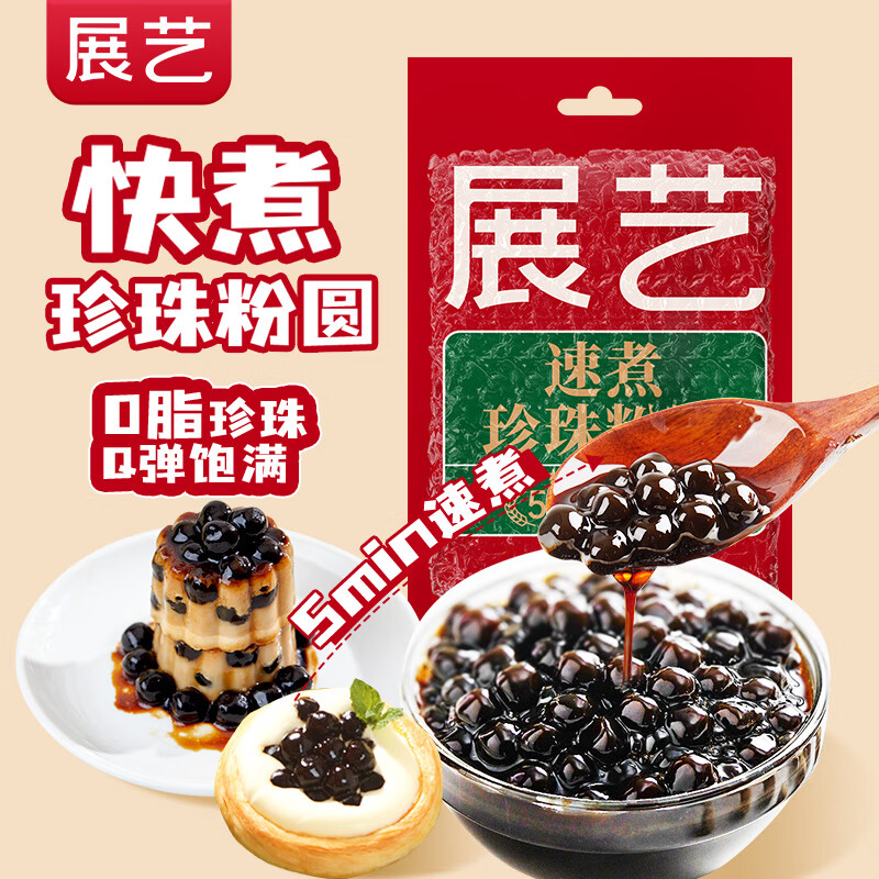 展艺快煮黑珍珠粉圆 烘焙原料自制清补凉波霸黑糖甜品奶茶店专用 500g