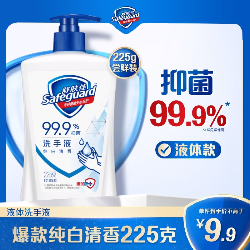 舒肤佳抑菌洗手液 纯白清香225g 健康抑菌99.9% 温和洁净保湿