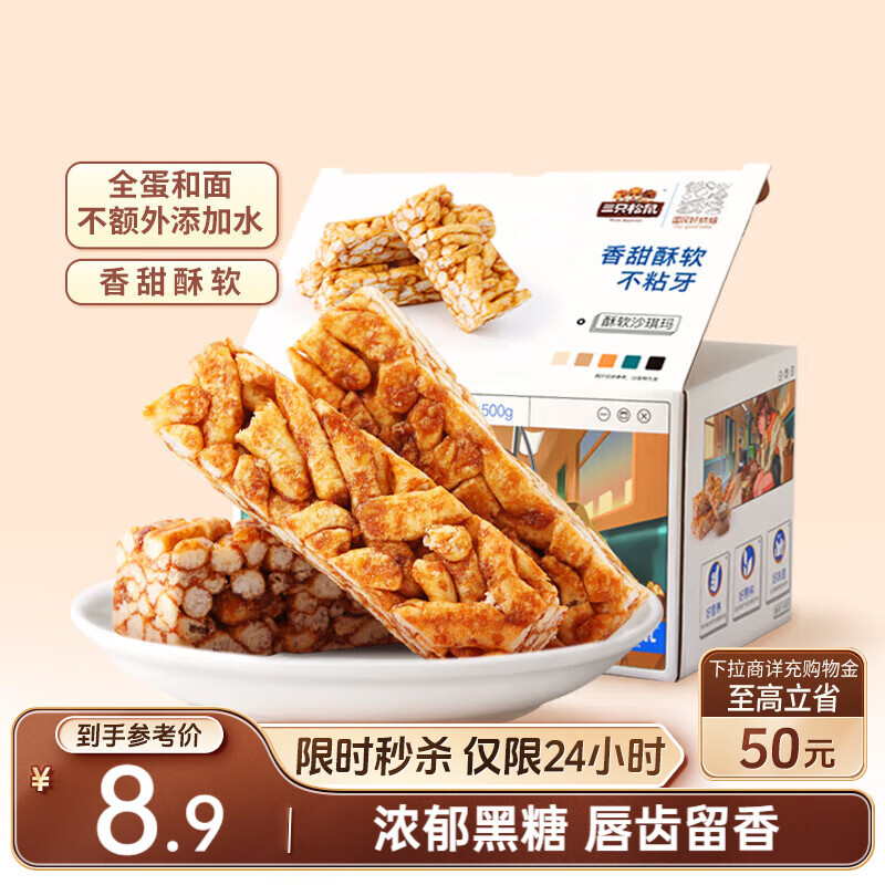 三只松鼠黑糖味沙琪玛500g 营养早餐代餐传统香酥糕点蛋糕休闲零食