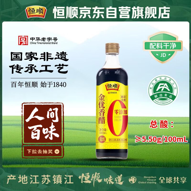 恒顺香醋 金优零添加 5.5度 500ml 不添加防腐剂