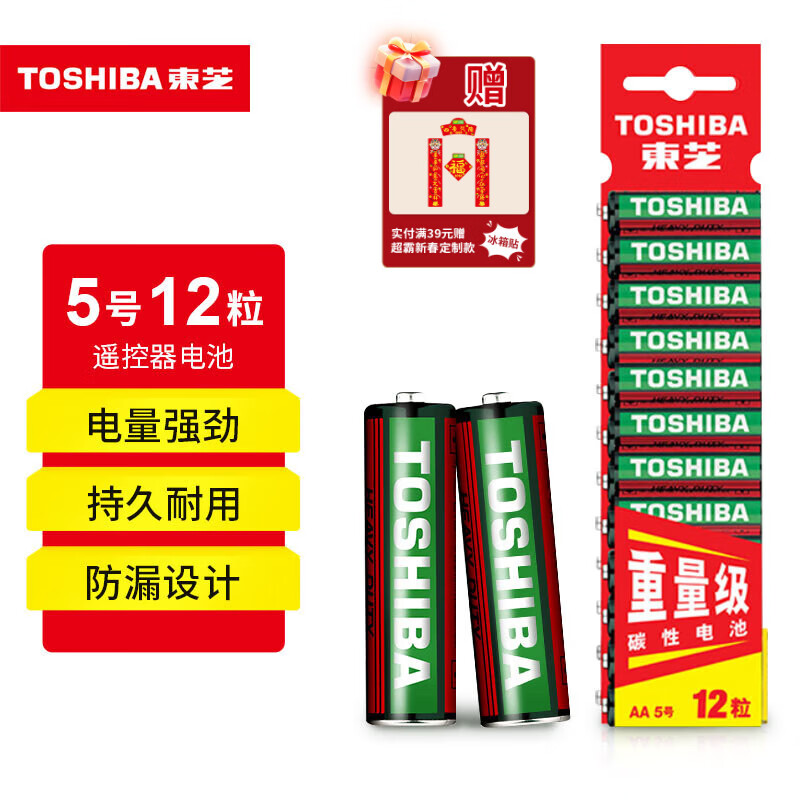 东芝(TOSHIBA)5号电池12粒装碳性干电池 适用于耳温枪/血氧仪/血压计/血糖仪/鼠标等AA/R6P 商超同款