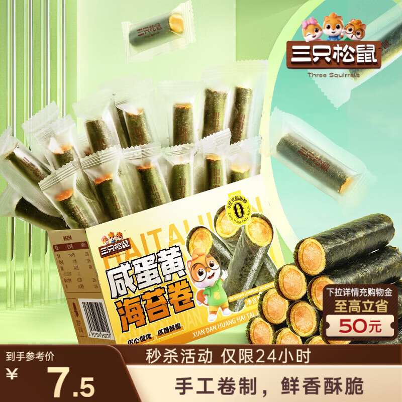 三只松鼠咸蛋黄海苔卷160g 海味零食夹心海苔小包装零食休闲食品解馋小吃