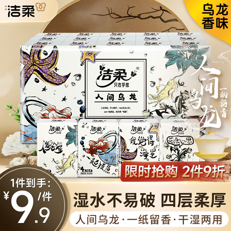 洁柔手帕纸 无极乌龙4层6片*30包纸巾小包超迷你便携装可湿水
