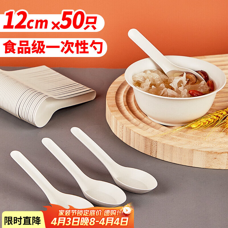 优奥一次性勺子【50只】加厚汤勺餐勺调羹甜品外卖打包勺食品级批发