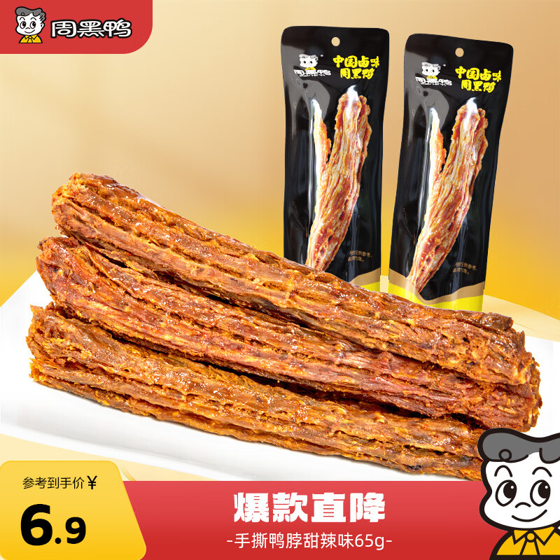 周黑鸭 手撕鸭脖65g 甜辣味 办公室零食 武汉特产 休闲零食