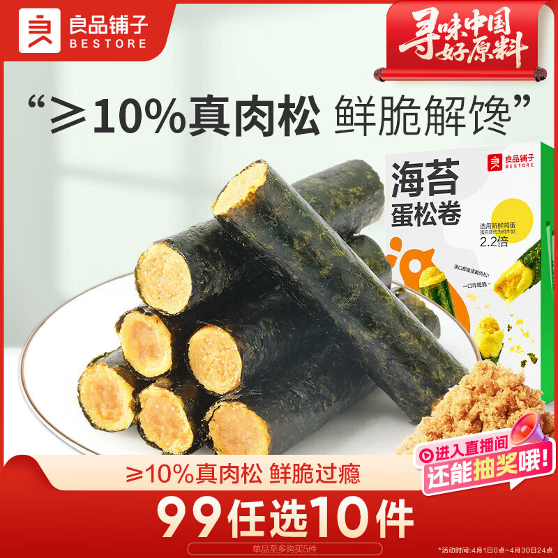 良品铺子海苔蛋松卷92g非油炸肉松海苔卷儿童零食海苔脆休闲小吃