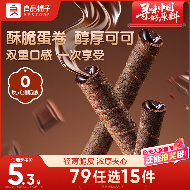 良品铺子注心脆脆卷巧克力味50g零食小吃充饥饼干蛋卷夹心酥脆早餐