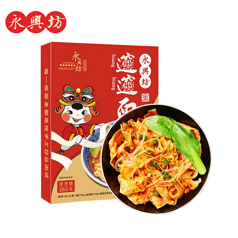 永兴坊 陕西biangbiang面265g 西安油泼面手工方便面速食特色面条宽面