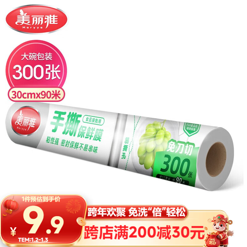 美丽雅点断式一次性保鲜膜大号90米*30厘米 食品级微波炉冰箱适用