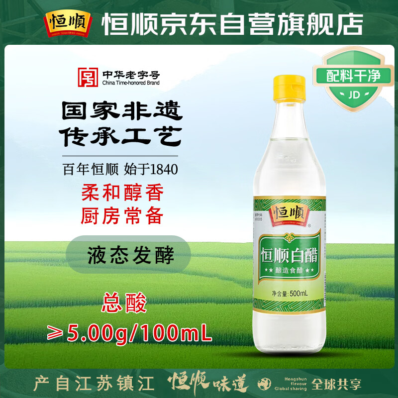 恒顺白醋 5度 500ml 凉拌提味炒菜腌制 酿造食醋 不添加防腐剂