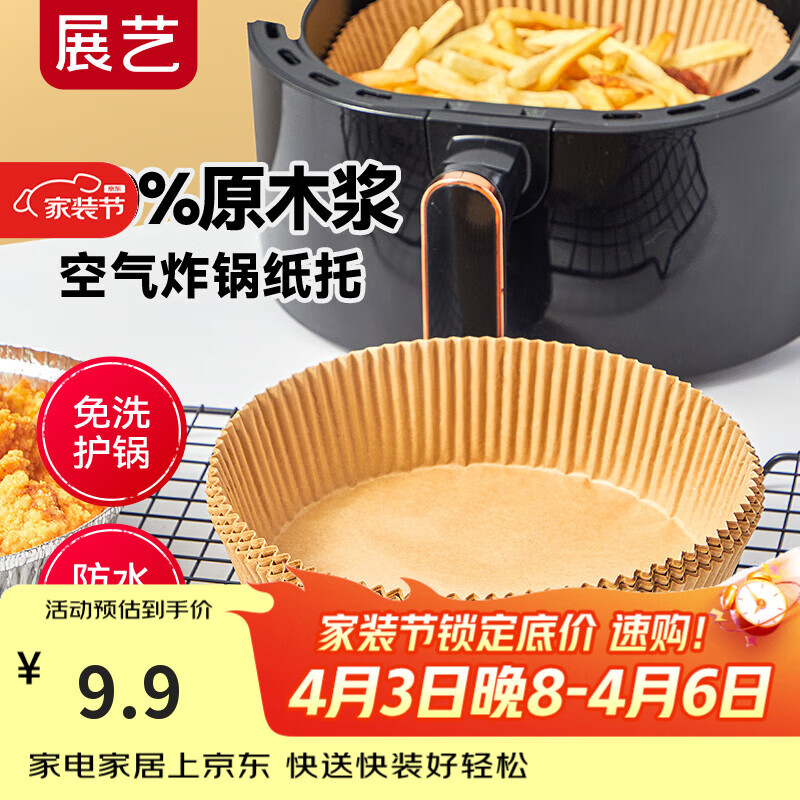 展艺圆形空气炸锅纸托53只装16cm 加厚加高食品级原木纸浆烘焙纸露营