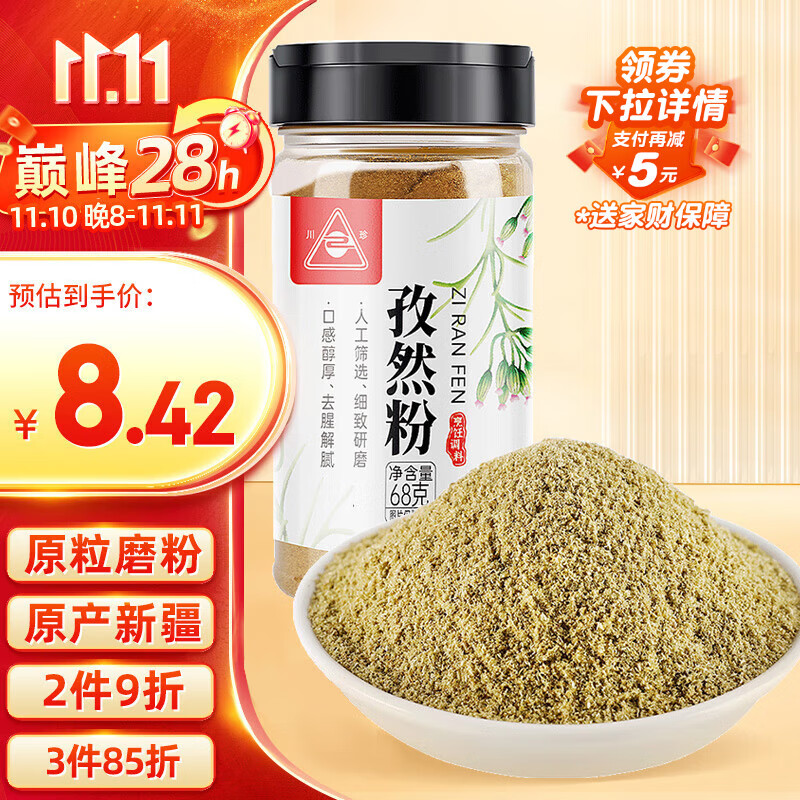 川珍纯孜然粉68g【新疆】厨房炖肉烧烤料腌肉烤串撒料香辛调料