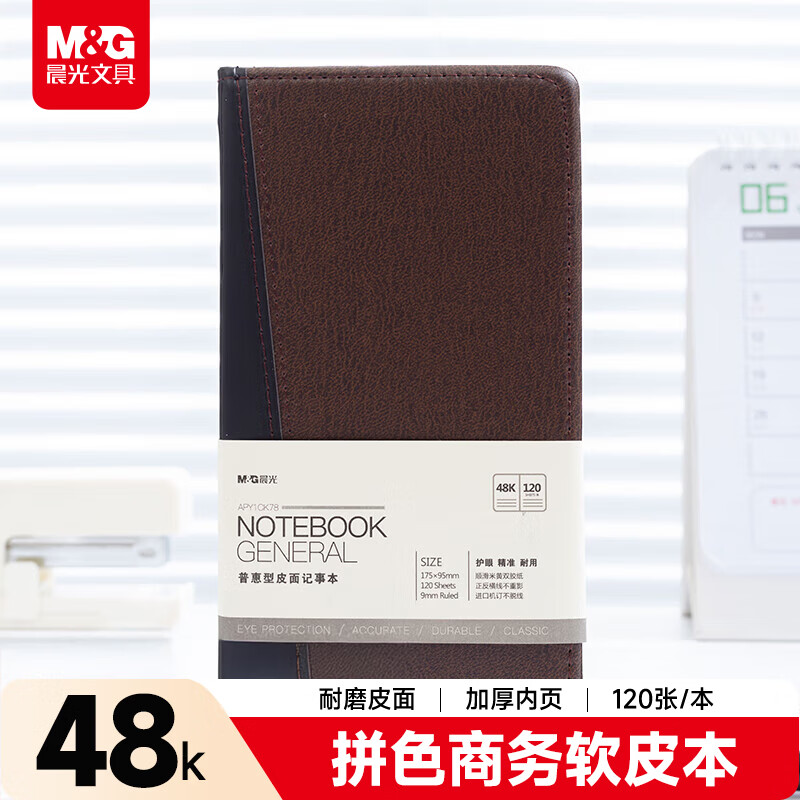 晨光(M&G)拼色软皮革面笔记本本子开会办公用品会议记录本普惠型日记本记事本商务48K/120张单本APY1CK78