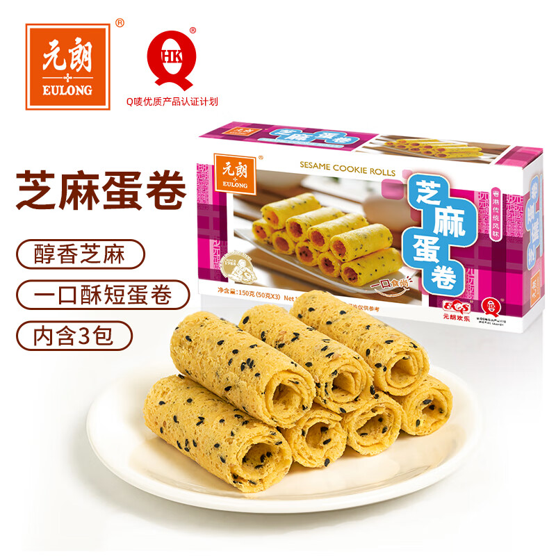 元朗鸡蛋卷饼干 休闲零食品曲奇糕点心 芝麻薄酥脆儿童孕妇老年人150g