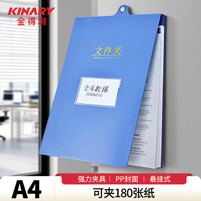 金得利可挂墙A4竖式文件夹悬挂式夹板上翻竖式板夹吊挂夹金属单强力夹资料夹子考勤签到日记录夹KF125