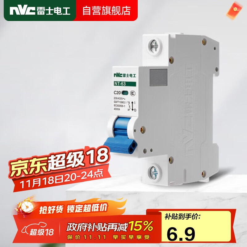NVC雷士电工 断路器 空气开关 家用微型空开 1P单极20A小型断路器