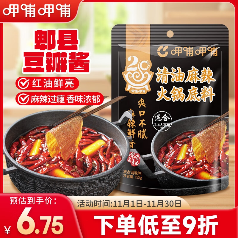 呷哺呷哺 清油麻辣火锅底料150g 火锅食材冒菜麻辣烫中辣调味料