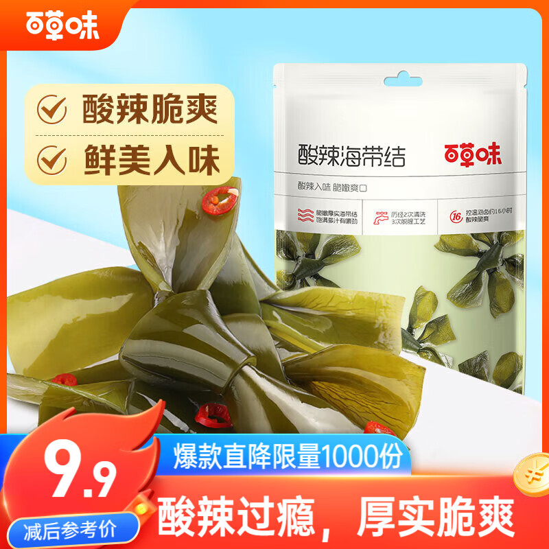 百草味 酸辣海带结200g/袋 海味休闲零食海带丝开袋即食特产小吃小包装
