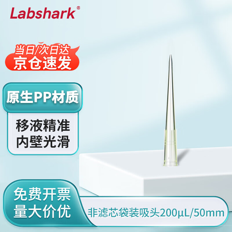 LABSHARK 移液器吸头枪头袋装无滤芯吸嘴实验室微量液体处理耗材【200μL】黄色1000个/袋 1袋
