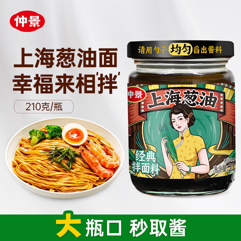 仲景 上海葱油拌面酱210g 云南小香葱配料干净荞麦面条馄饨调味酱料