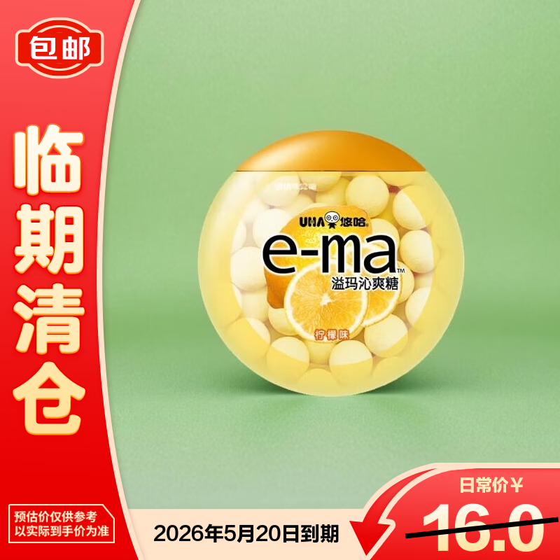 悠哈溢玛e-ma沁爽糖 33g 柠檬味 【临期清仓】