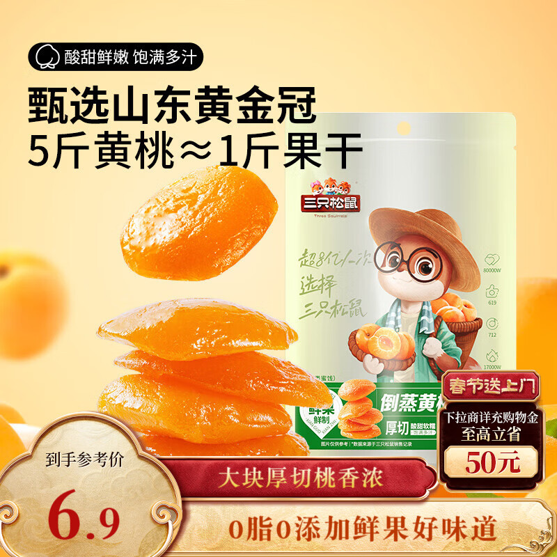 三只松鼠倒蒸黄桃干106g/袋 蜜饯果干果脯休闲零食小吃干桃肉