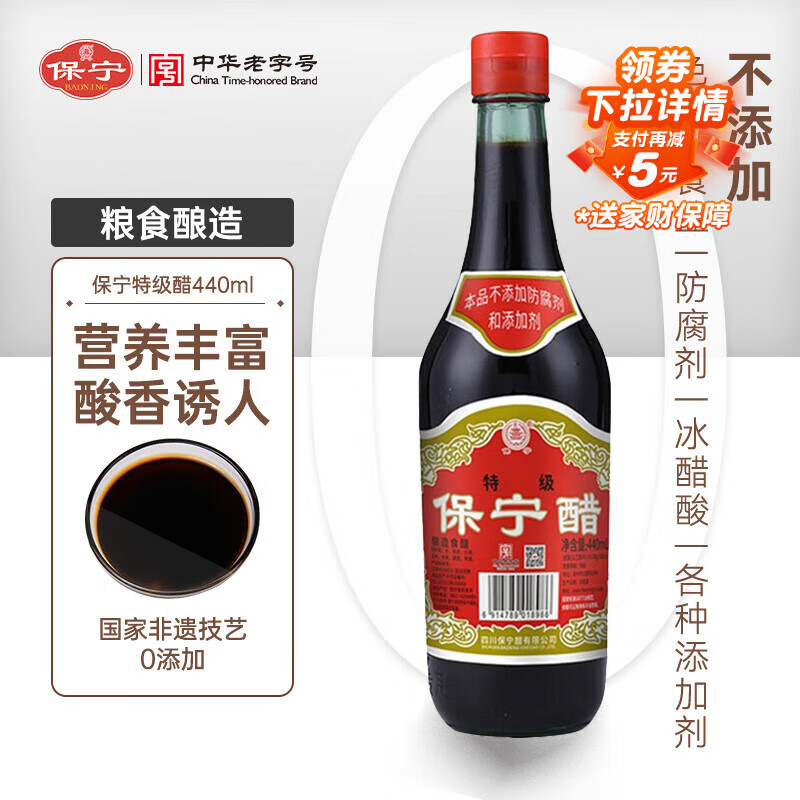 保宁醋 陈醋6度440ml 【零添加防腐】特级酿造食醋 炒菜调味饺子蘸料