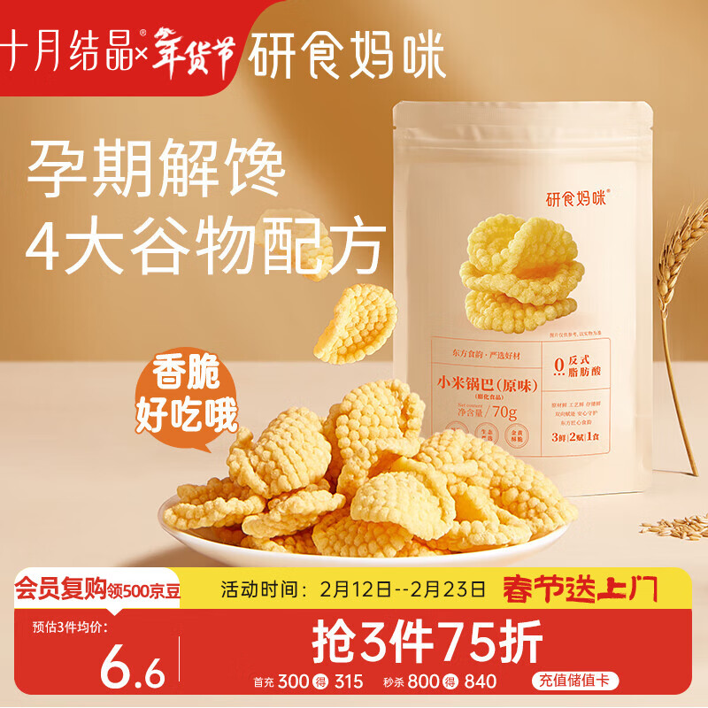 十月结晶研食妈咪小米锅巴70g/袋孕妇解馋零食营养孕期孕早期中期小吃防饿