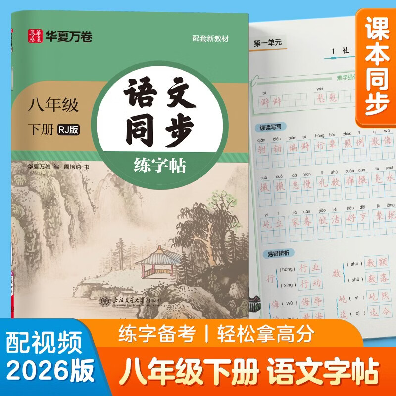 【2026春新】华夏万卷 八年级下册语文同步练字帖 初中生8年级同步RJ人教版 天天练描红练字本田字格生字抄写本 手写规范字体楷书字帖