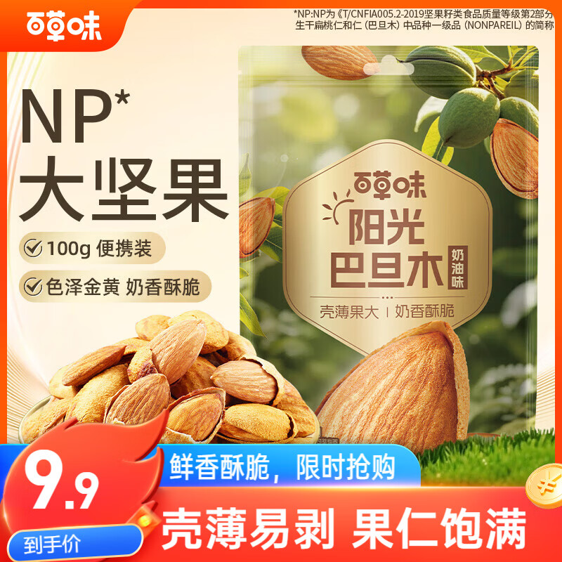 百草味巴旦木100g 奶油味 每日坚果干果休闲零食扁桃仁 新老包装随机发