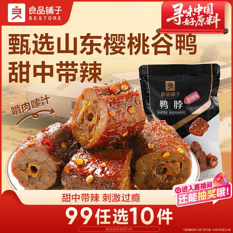 良品铺子甜辣鸭脖128g 熟食卤味 肉干肉脯 休闲零食 武汉特产小吃