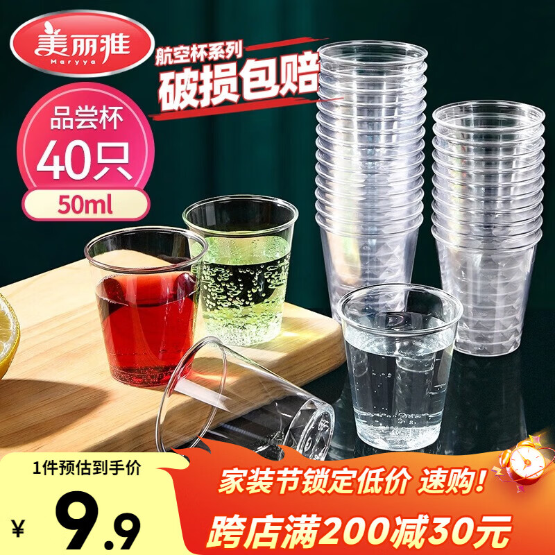 美丽雅航空杯小号50ml*40只 一次性品尝试饮试吃白酒茶杯 加厚塑料杯