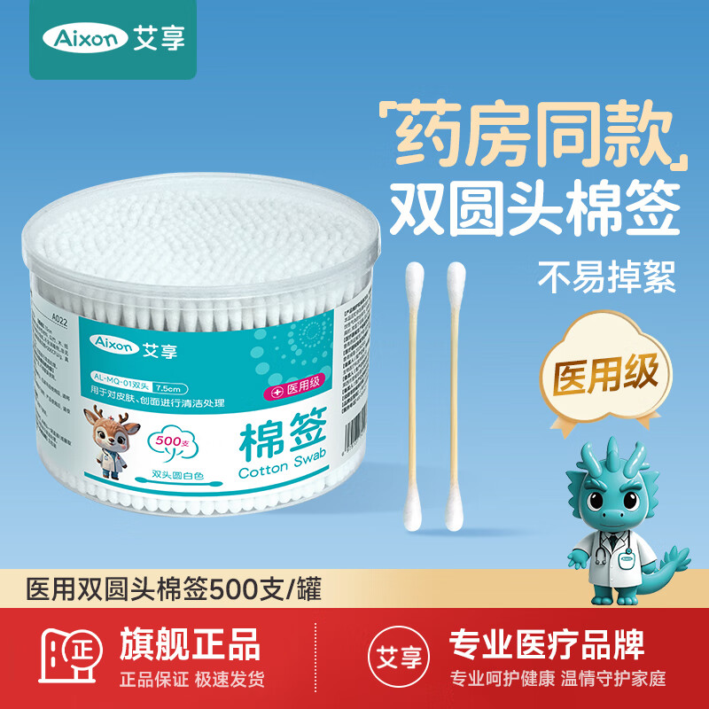 艾享医用棉签一次性消毒化妆圆双头成人儿童婴儿掏耳朵500支