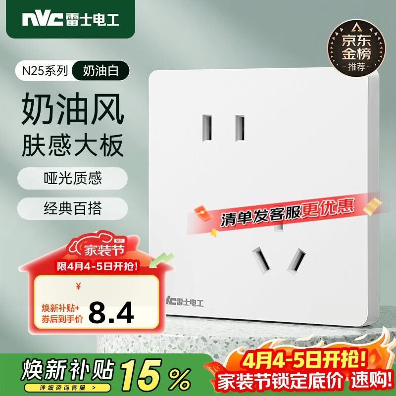 NVC雷士电工 开关插座 10a斜五孔插座 86型暗装插座面板 N25奶油白