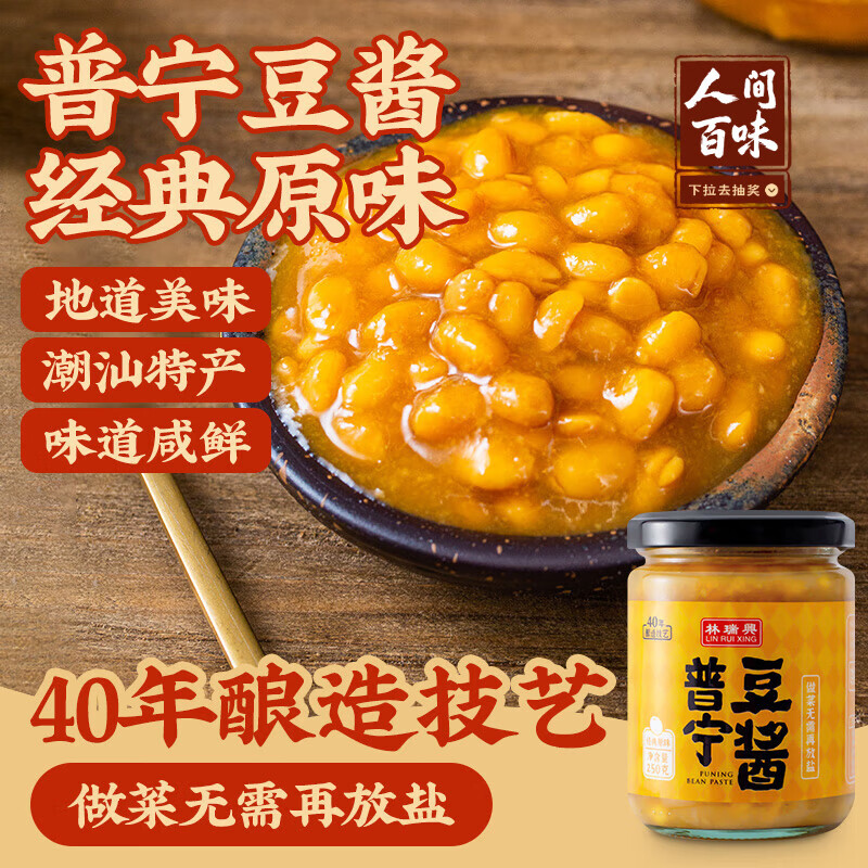 林瑞兴豆酱250g 原味潮汕特产正宗普宁黄豆酱潮汕豆瓣酱炒菜专用家用