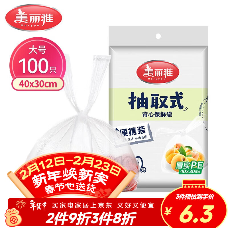 美丽雅一次性保鲜袋食品级背心100只大号40cm*30cm塑料袋加厚冷藏
