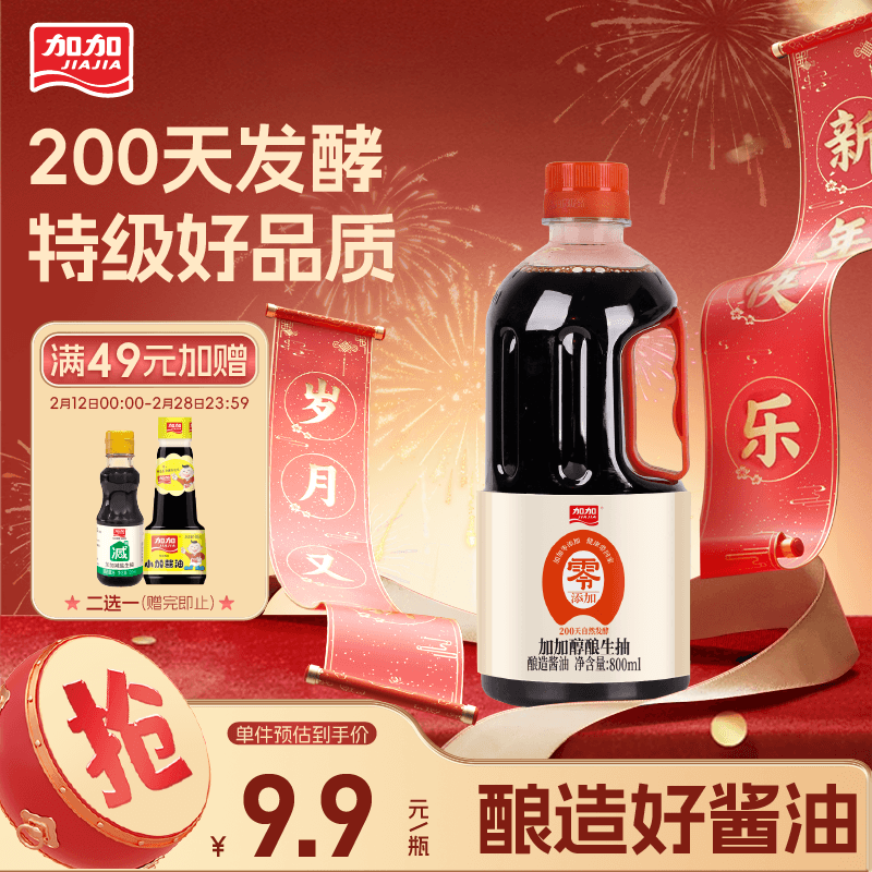 加加 精选系列 醇酿生抽800ML【0添加 特级】0添加白砂糖 酿造酱油