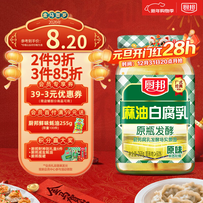 厨邦麻油白腐乳268g 原瓶发酵 传统霉豆腐 下饭菜 拌饭炒菜佐餐蘸料