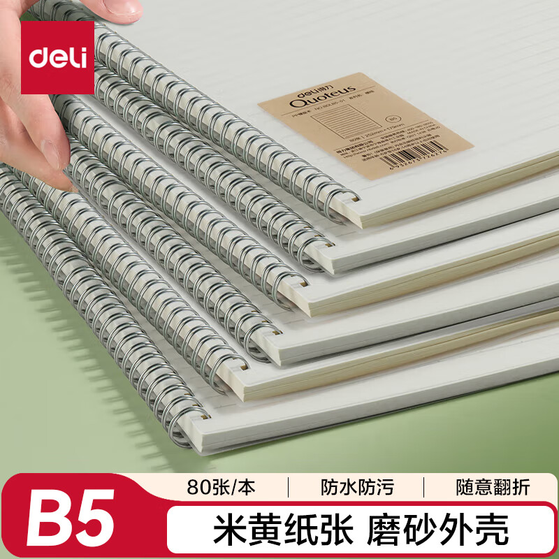 得力(deli)B5螺旋记事本笔记本线圈本子80张/本 横线内芯BDLB5-01