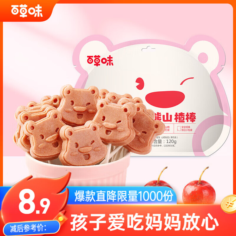 百草味 小熊山楂棒120g 山楂棒童趣零食休闲小吃蜜饯果脯