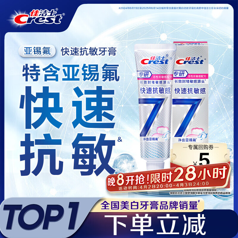 佳洁士专研快速抗敏牙膏根源解决牙齿敏感40g京东自营新老包装混发