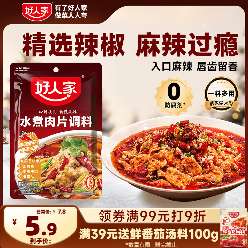 好人家水煮肉片调料 可煮牛肉毛血旺特产方便调味品100g2-3人份