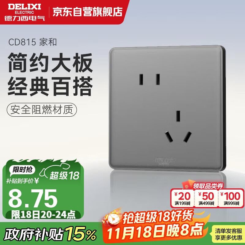 德力西(DELIXI)开关插座面板 CD815系列 10A斜五孔插座星空灰