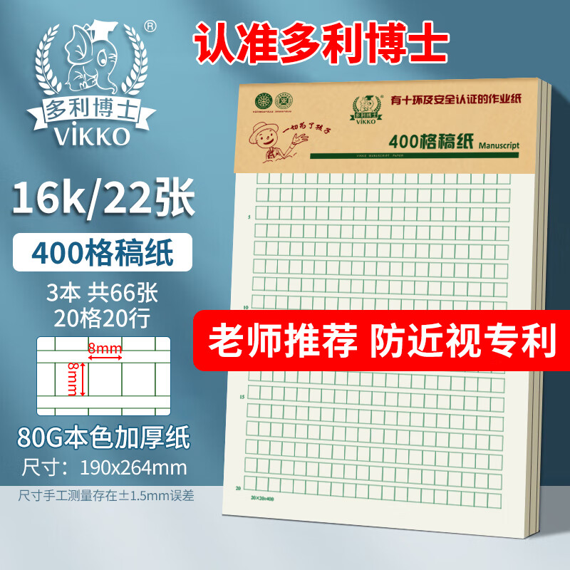 多利博士3本 16K22张400格作文纸稿纸信纸信笺本文稿纸作文本原稿纸加厚护眼学校指定老师推荐【爆款热卖】